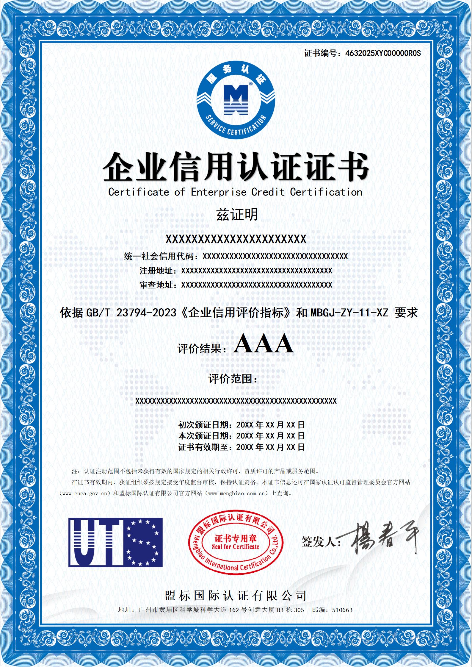 企業(yè)信用認(rèn)證證書——中文版證書