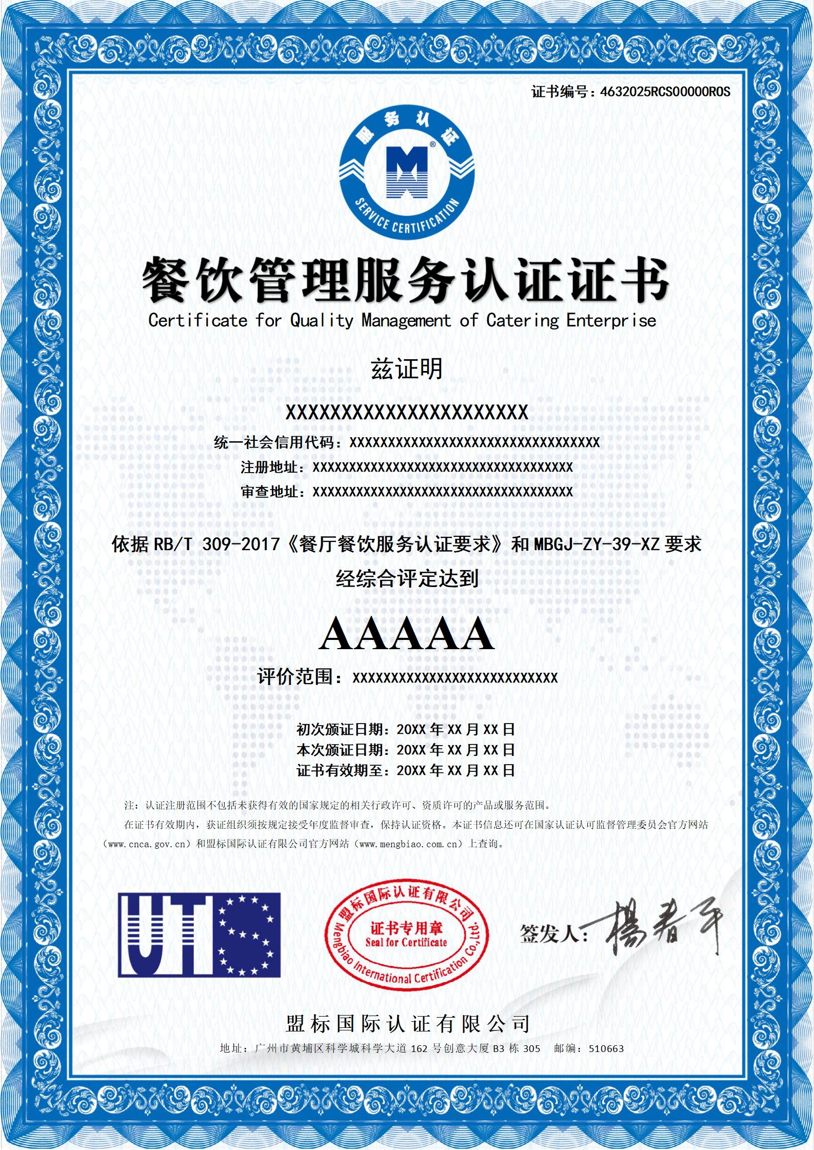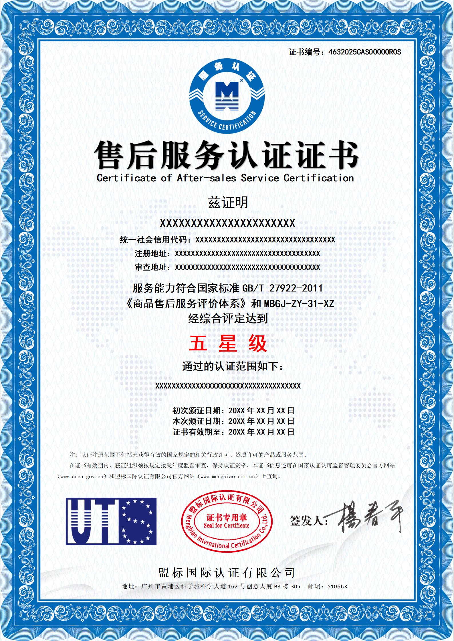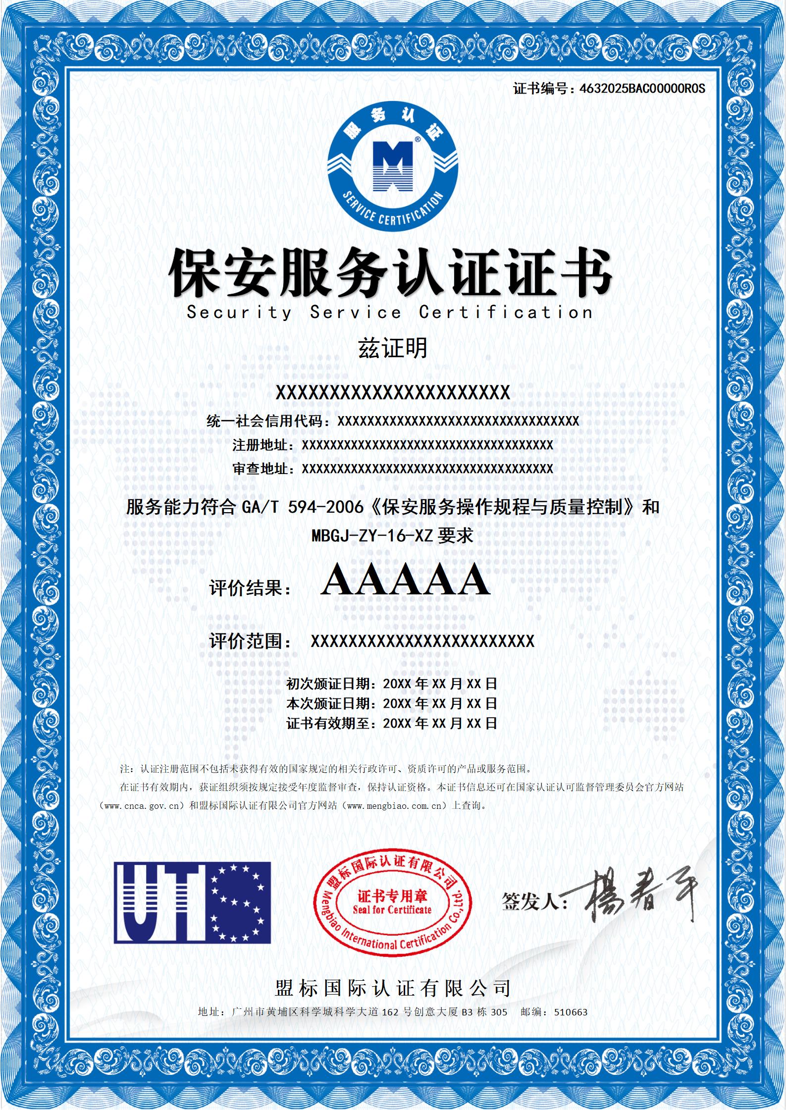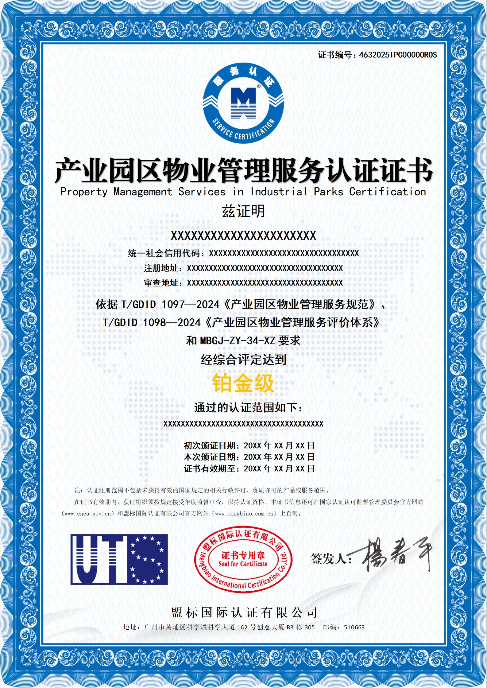 產(chǎn)業(yè)園區(qū)物業(yè)管理服務認證證書-樣版